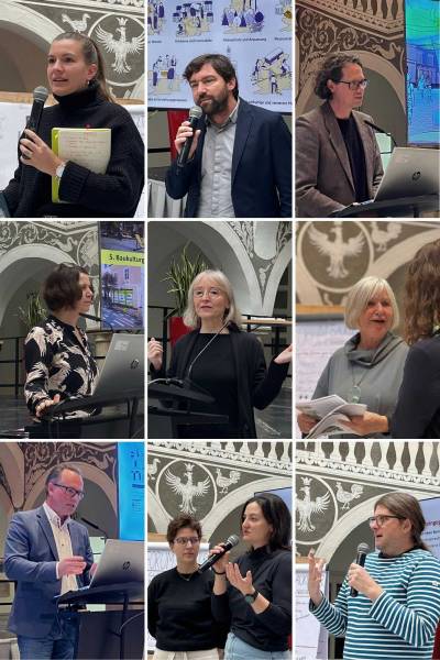 Die im Bund für Baukultur zuständige Abt. IV/B/4 des BMWKMS gab Einblick in aktuelle Projekte, wie die Konzeption eines Leitfadens für Integrierte räumliche Entwicklungskonzepte, dem schrittweise Aufbau einer Bund-Länder-Kooperation, dem 1. Call einer Baukulturförderung und dem im Entstehen befindlichen 5. Baukulturreport.