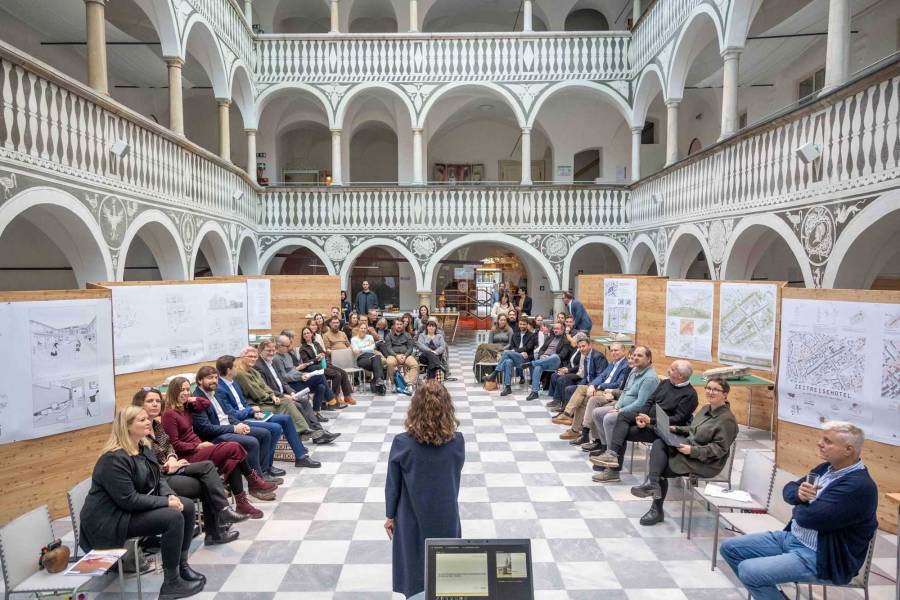 Nach der Begrüßung durch Bürgermeister Martin Kulmer sowie Gaby Schaunig und Daniel Fellner als Vertretung der Landesregierung erläuterten Raffaela Lackner, Regina Bitterlich und Elias Molitschnig, wie man in Kärnten Baukultur vorantreibt und strukturell etabliert.